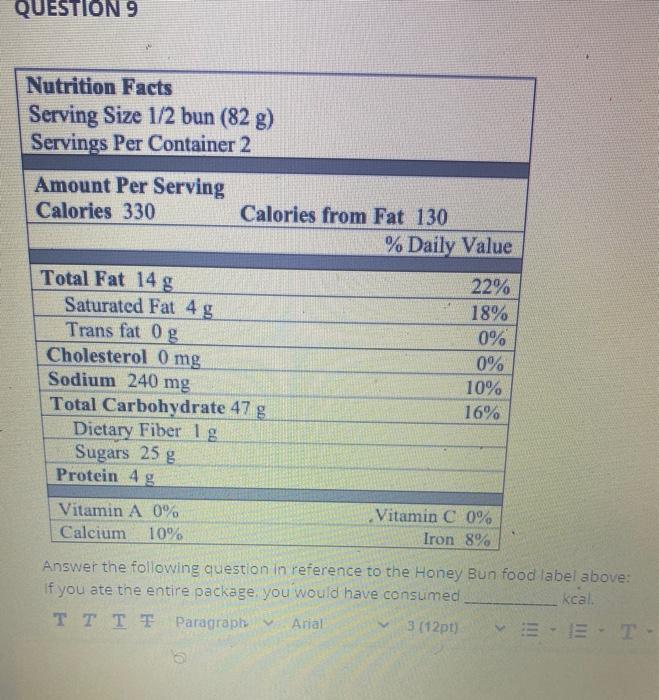 Honey bun food label
