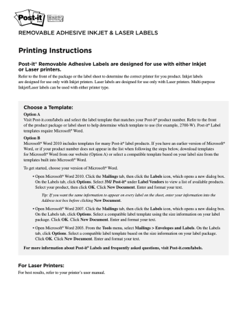 Printing Instructions Copier labels are designed for use in photocopiers. Choose a Template: Option A Visit 3M.com/labels and select the label template that matches your 3M product number. Refer to the front of the product package or label sheet to help determine which template to use (for example, 3100-B). 3M™ Label templates require Microsoft® Word. Option B