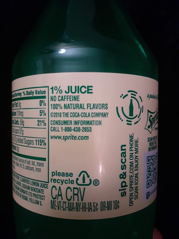 Sprite ingredient label