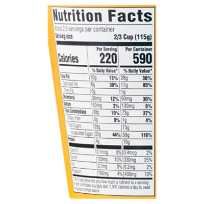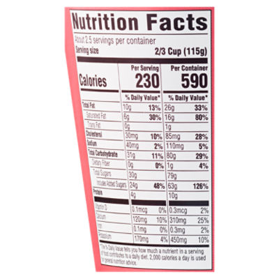 Does All Yogurt Contain Probiotics - HealthyGutClub.com Per serving : 105 calories, 5 g fat , 75 mg sodium, 9 g carbs, 0 g fiber, 7 g sugar, 6 g protein Probiotic strains: 2 Billion Lactobacillus acidophilus NCFM, Bifidobacterium lactis Bi-07 This new product offered by Astro provides more than 2 billion active probiotic cultures per serving of 100g. It comes in a variety of flavours, and is available in tubs, multipacks, and as a yogurt drink. 7 Best Low-Carb And Keto Friendly Yogurts, Per Dietitians - Women's Health Per serving: 140 calories, 6 g fat (3.5 g sat), 7 g carbs, 7 g sugar, 13 g protein. 7. FAGE Low-Fat Plain Greek Yogurt. FAGE Low-Fat Plain Greek Yogurt. $5 at Target. This FAGE yogurt has no added ... Anatomy of an Ingredient Label - IFT.org The Nutrition Facts section of the label has nine components required by the Food and Drug Administration (FDA): serving size, calories, total fat (trans and saturated), cholesterol, sodium, total carbohydrates (dietary fiber, total sugars, added sugars), protein, vitamins and minerals, and the percentage of daily value (DV) for each of these components in the food product (excluding serving size and calories). The FDA provides resources for calculating the caloric content of foods. 35 Food Label U Labels 2021 - Otosection Label claim: definition (per standard serving size) fat free* or sugar free: less than 0.5 gram (g) of fat or sugar: low fat: 3 g of fat or less: reduced fat or reduced sugar. Feb 18, 2022 · as a private label and pet care contract manufacturer, simmons pet food boasts 3,500 products mostly in the wet pet food space compared to other pet ….